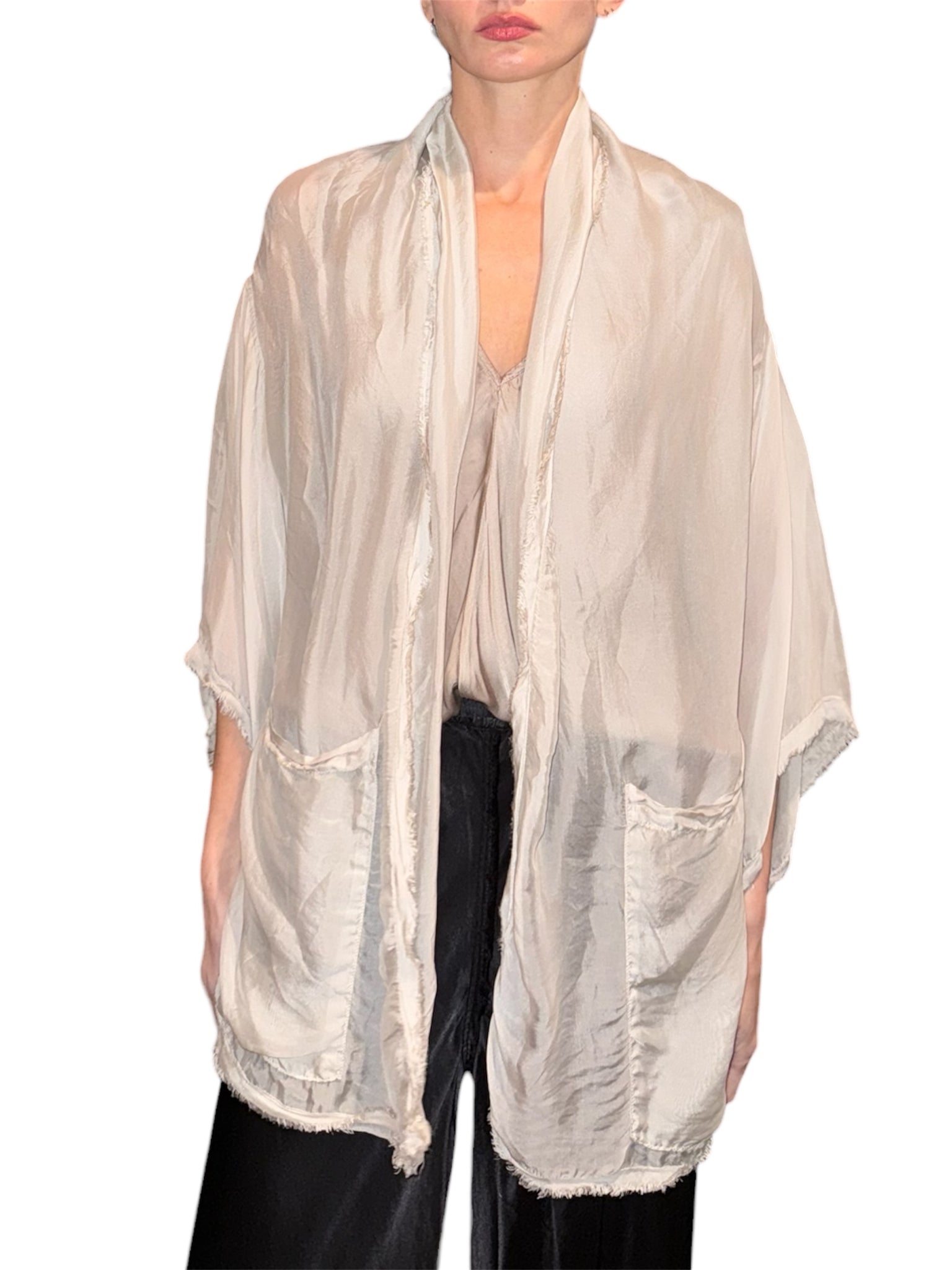 A Privee jacket made from chiffon would be a unique and elegant piece. Chiffon is a lightweight, sheer fabric that is known for its delicate and flowy texture, making it a popular choice for formal and evening wear. A Privee jacket in chiffon could add a touch of sophistication and femininity to your outfit.